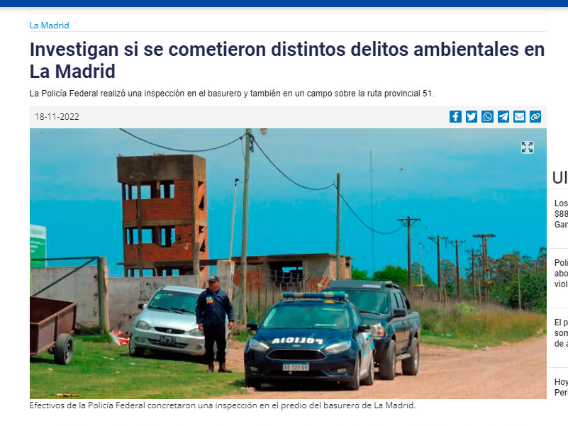 Esa misma semana concejales del bloque se acercaron hasta el Basurero Municipal para ver que la realidad del lugar mostraba una cara completamente distinta a la que se registra en los papeles del HCD. En vísperas de presentación del proyecto se llevó adelante un entierro masivo de envases fitosanitarios que no estaban limpios, y algunos no estaban todavía vacíos, lo que genera un impacto negativo y contaminante para el ambiente de todos los vecinos de General La Madrid.