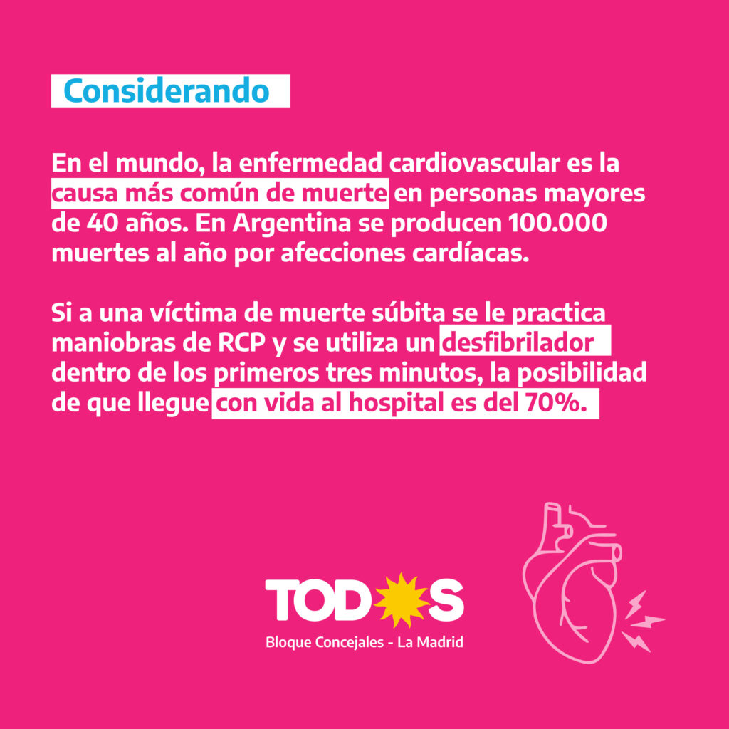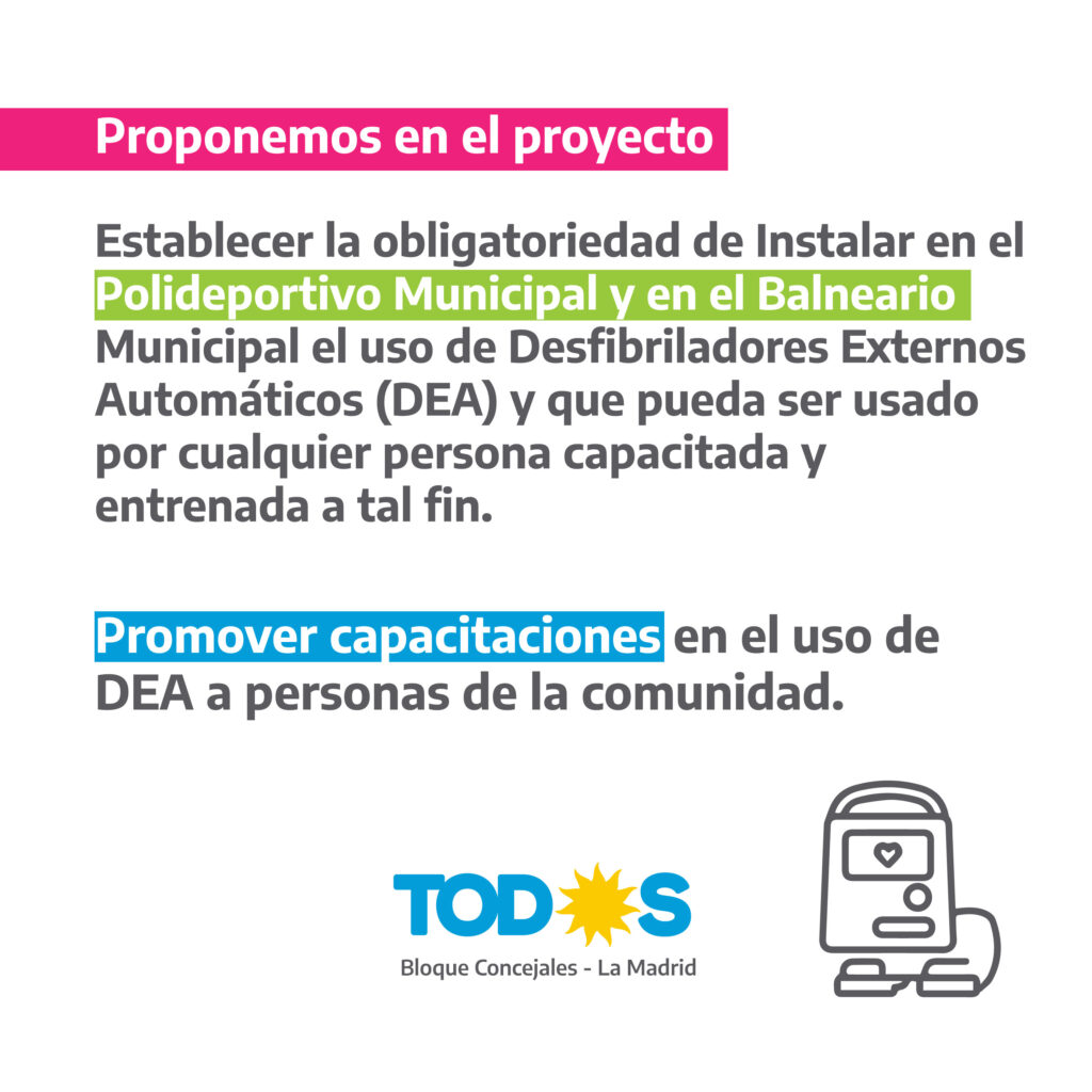 En la 2° Sesión Extraordinaria celebrada el 26 de Enero de 2023, el Bloque de Todos La Madrid, presentó la Ordenanza que solicita la disponibilidad de Desfibriladores Externos Automáticos (DEA) en espacios públicos para la prevención de eventos de muerte súbita.