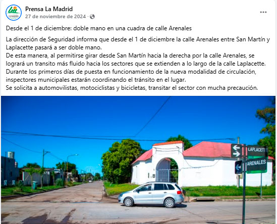 Finalmente, la calle Arenales volvió a ser doble mano, entre las calles San Martín y Laplacette, lo que facilita el flujo de tránsito y no carga a calles precarias con mayor circulación vehicular.